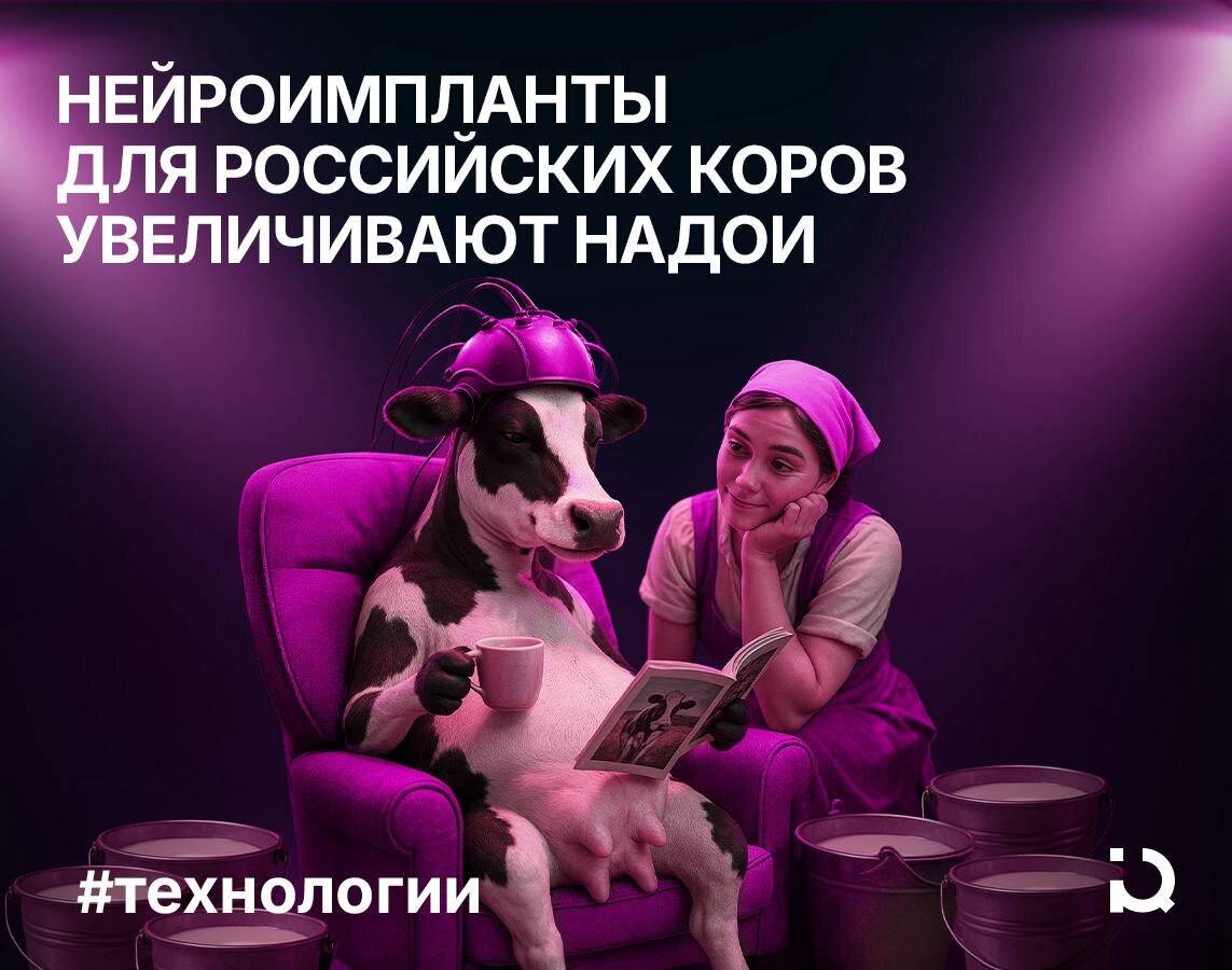 Коровам наставили «НейроРога» Российские ученые внедрили импланты «НейроРога» фермерским коровам, чтобы увеличить надои. Первые операции прошли на пяти животных, и все они перенесли вмешательство без осложнений. Устройства закреплялись на затылке и стимулировали определённые зоны мозга, отвечающие за аппетит, стресс и молокоотдачу. В компании-разработчике Neiry объясняют: нейростимуляция позволяет не только увеличивать продуктивность животных, но и улучшать их общее самочувствие. Система отслеживает состояние коровы и в случае снижения аппетита или падения активности автоматически подбирает индивидуальный режим стимуляции. Для внедрения технологии создана уникальная мобильная нейрохирургическая операционная. Она позволяет проводить устанавливать оборудование прямо на фермах, избавляя аграриев от необходимости перестраивать инфраструктуру. Такой подход значительно снижает стоимость процедур и делает технологию доступной даже для небольших хозяйств. Сейчас «НейроРога» готовятся к пер