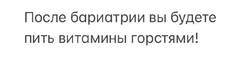💊 После бариатрии вы будете пить витамины горстями! Звучит жутковато, правда? Давайте разберёмся, миф это или правда. Витамины нужны всем Даже абсолютно здоровому человеку. Витамин D, кальций, магний, йод — это то, чего часто не хватает в питании. Особенно женщинам: для костей и нервной системы. После бариатрической операции витамины становятся обязательными, но не навсегда. Это не прихоть хирургов, а способ защитить организм от дефицитов. Давайте разберёмся, что ждёт вас после операции: Рукавная резекция желудка Желудок меньше, кислоты мало → хуже усваиваются железо, кальций, B12. Поэтому первый год приём витаминов обязателен, потом усвоение постепенно восстанавливается. Шунтирование Часть кишечника «выключается» из работы, поэтому может хуже усваиваиваться железо, кальций, B12, фолиевая кислота и витамины A, D, E, K. Тут витамины нужно принимать дольше, но даже с этим качество жизни становится в разы лучше, чем с лишним весом и сопутствующими болезнями. 🔹 А как же «горсть