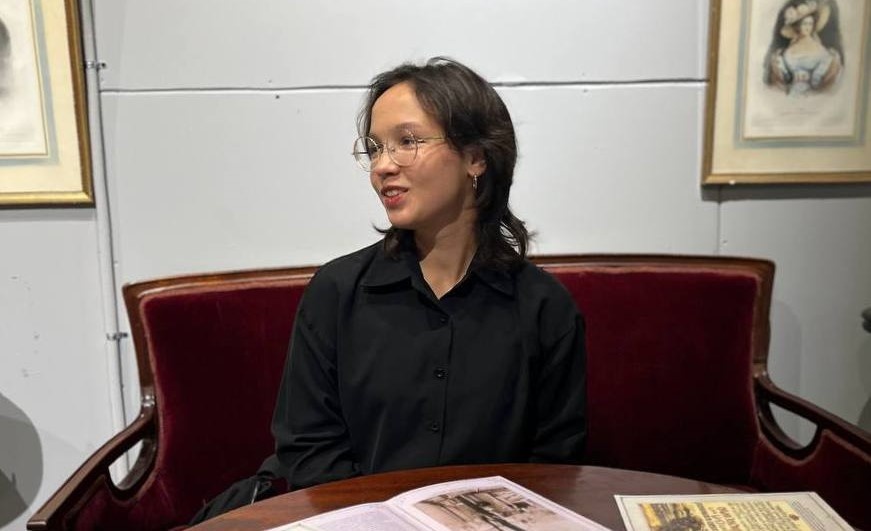 В торговом центре «Аймол Эспланада» в Перми открылся новый выставочный зал под названием «Русский салон». Создателями музейного пространства стали Артем Бронников и Варвара Кальпиди. В самом «молодом» торговом центре Перми, среди бесконечного лабиринта магазинов и бутиков, есть музейное пространство «Русский салон», который я совершенно случайно обнаружила. Попадая внутрь, кажется, будто уже кто-то изобрел машину времени, и я попала в XIX век. На входе нас встречает кресло и стол из массивного дуба, тем самым сохраняя вид кабинет второй половины XIX века. В этом кабинете нас ждет один из создателей выставки и талантливый экскурсовод Артем Бронников. На моё удивление он не начинает рассказ с первого, встречающего нас зала, а ведет в совершенно другое, и по цвету, и по настроению, пространство. Там представлена отдельная выставка «Сквозь время». Авторы работ, Апполинария Мишина и Ника Клецки, объединены одной идеей - Слово Божье - это не артефакт, и не далекая мысль, застрявшая в прошлом