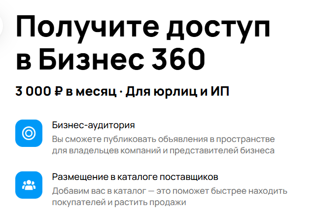 Перевод на человеческий: «Бизнес 360» теперь — отдельная дверь. Ключ стоит 3000 ₽. Через дверь по-прежнему берут деньги за проход (показы и целевые действия), но входной ключ даёт право вообще в эту дверь попасть.