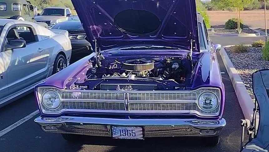 Особое внимание привлек один из экземпляров, окрашенный в необычный фиолетовый оттенок, который не встречался в стандартной палитре того времени. Такой цвет делал машину по-настоящему уникальной, ведь в 1965 году подобные решения были редкостью даже для смелых американских производителей. В сочетании с эксклюзивными элементами отделки этот Satellite стал настоящей находкой для коллекционеров.