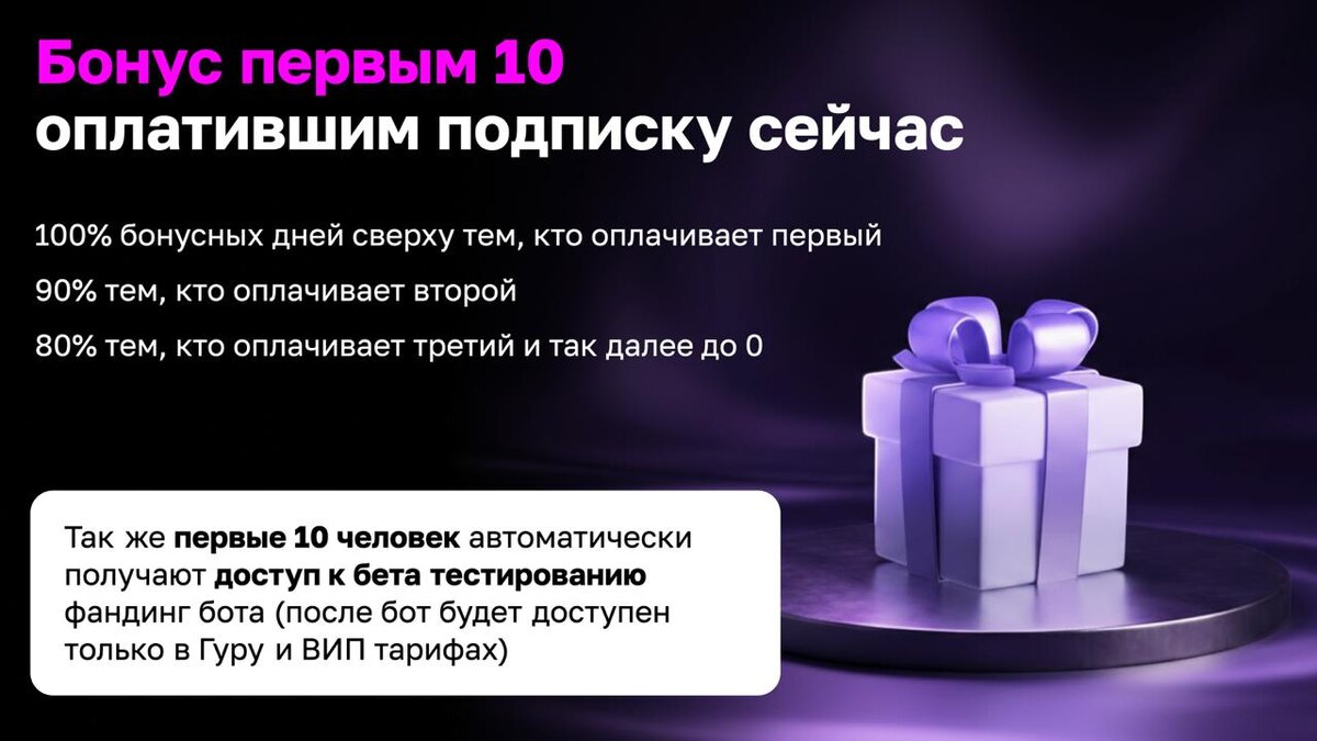 Спасибо всем, кто принял участие в нашем вебинаре, на нем мы продемонстрировали функционал нашего нового продукта фандинг бота, показали кейсы клиентов за сентябрь и ответили на все ваши вопросы в режиме онлайн. Если у вас остался какой то вопрос пожалуйста напишите нам 👉 @arbitrage_scanner_support_bot Ограниченная акция на 10 мест: -Первый кто купит подписку +100% дней ( то есть например купили подписку VIP на 365 дней и 365 дней начисляем в подарок) - Второй кто купит подписку +90% дней - Третий кто купит подписку +80% дней И так далее... Так же доступ к демо каналу фандинг бота первым 10 кто оплатит подписку! 🚀Успейте воспользоваться акцией и получить доступ в закрытый канал по фандинг боту Напишите нам сейчас: @arbitrage_scanner_support_bot