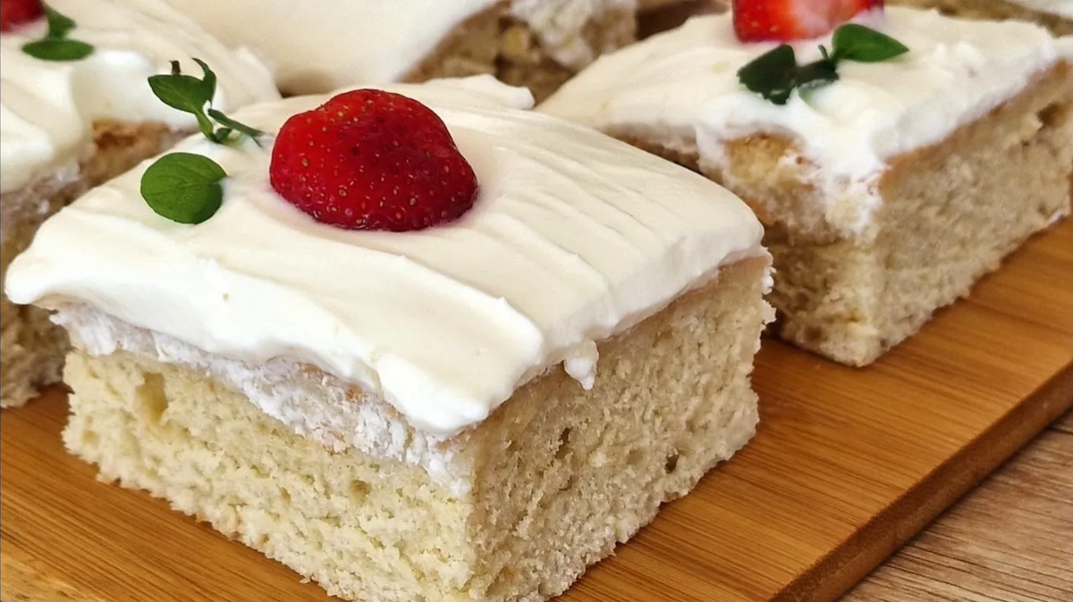 Отличный вариант, когда хочется чего-то сладкого без лишних заморочек. Готовится за 30 минут, а съедается ещё быстрее. 📝 Ингредиенты для теста: 2 яйца, щепотка соли, 8 г ванильного сахара (1 пакетик), 1 стакан (300 мл) сахара (можно меньше по вкусу), 1 стакан (300 мл) кефира, 1 ч. л. соды, 3 стакана муки (по 300 мл), 1 ч. л. разрыхлителя, 3 ст. л. растительного масла. Для крема: 200 мл сливок 30%, 300 г сметаны, 4–5 ст. л. сахарной пудры (по вкусу), 1 ст. л. лимонного сока. Дополнительно: любые ягоды (например, клубника) для украшения. 👩🍳 Приготовление: в глубокой миске миксером взбить яйца с солью, ванильным сахаром и обычным сахаром до пышности. Влить кефир и добавить соду - пусть "пошипит". Постепенно всыпать муку и разрыхлитель. Влить растительное масло и хорошо перемешать до однородного теста. Тесто получается густоватое, как для бисквита. Застелите противень пергаментом. Вылейте тесто, разровняйте. Выпекайте в разогретой
