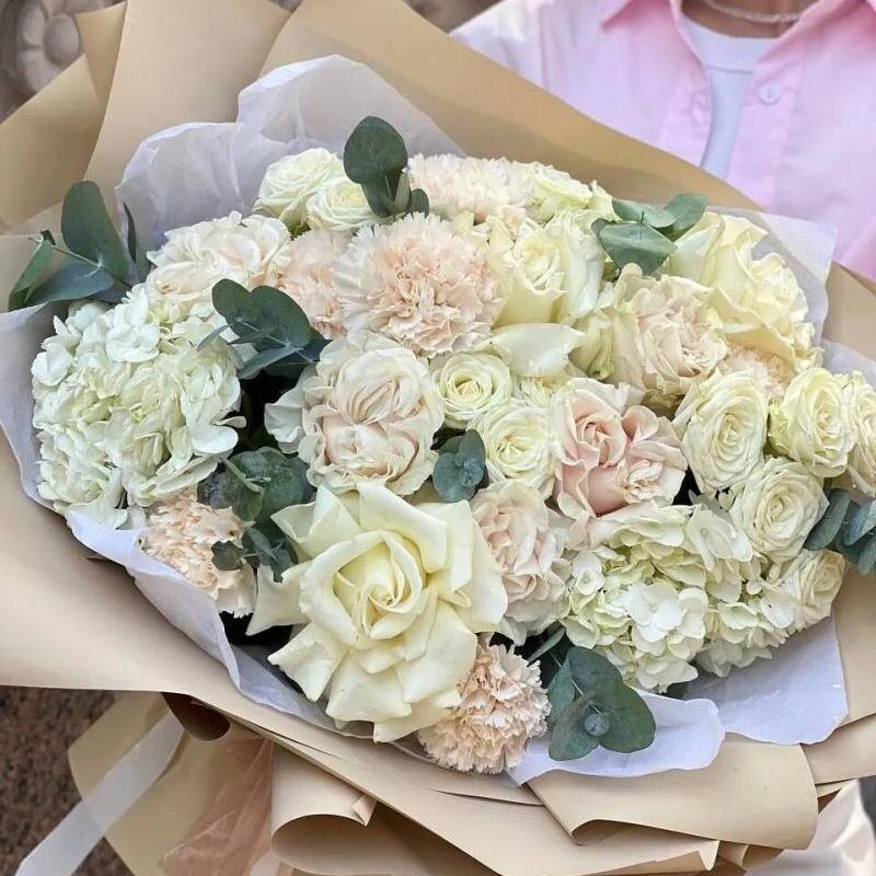 - Гортензии: их пышные соцветия идеально подходят для минималистичных, но объемных композиций, что соответствует актуальным трендам флористического дизайна.