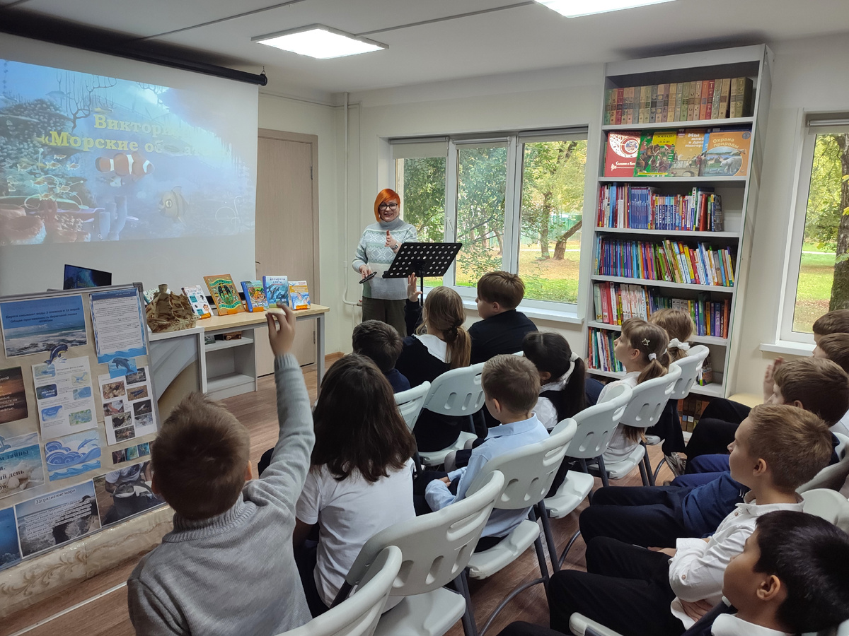 В завершении встречи школьники ознакомились с выставкой, на которой были представлены книги о морях, океанах и жителях морских глубин.