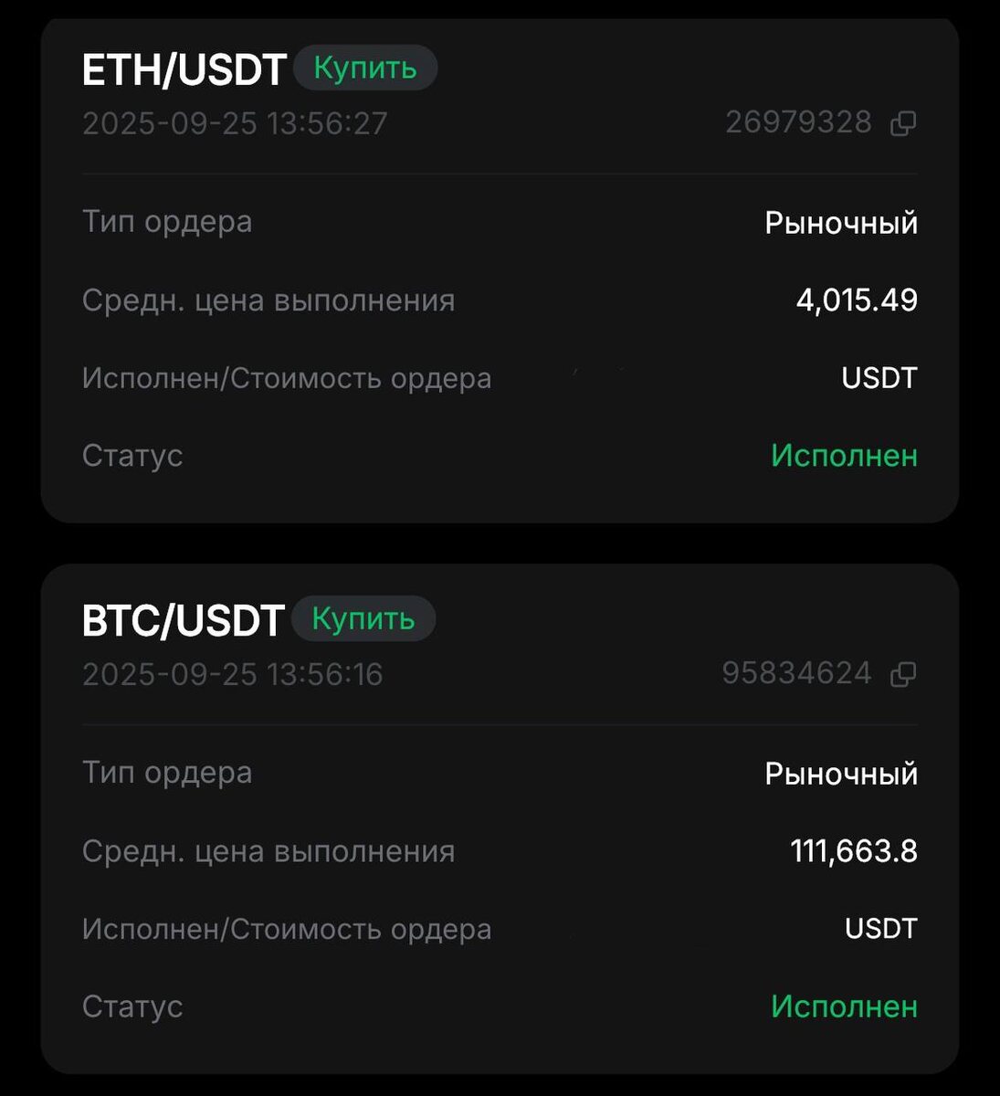 π’ ΠΡΠΏΠΈΠ» BTC ΠΏΠΎ 111 664 ΠΈ ETH ΠΏΠΎ 4 015