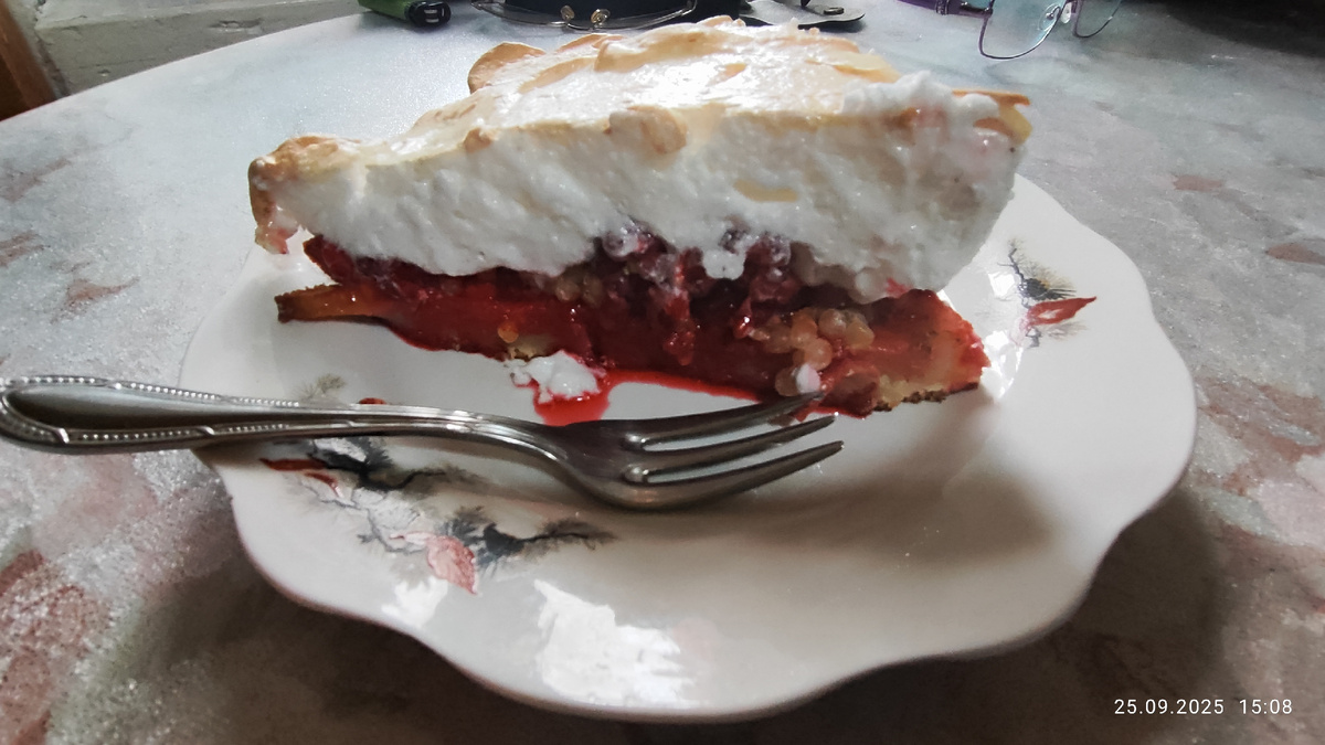 Пирог-десерт с машиной. Рецепт с фото Всем здравствуйте! Лето подходит к концу, а у нас урожай малины! Есть у меня один рецепт вкусного пирога, хочу им поделиться. Лет 20 печем его каждый год, и даже зимой с замороженными ягодами. Итак: нам понадобится мука, сахарный песок, яйца, сливочное масло, сметана, сода, соль, ягоды Яйца делим на желтки и белки, белки отставляем сразу в холодильник. В этот раз я взяла две нормы,(из 6ти яиц),а рецепт напишу на одну обычную норму: -3 яйца -1/2 стакана сах. песка -1/2 стакана муки -100 г. густой сметаны -50г. сливочного масла - свежая, не мытая малина - щепотка соли, сода на кончике ножа Желтки смешиваем с сахаром, добавляем сметану, на неё высыпаем соду, перемешиваем, добавляем растопленное и остывшее сливочное масло, соль, перемешиваем и добавляем муку. Тесто должно быть как тягучая сметана, поэтому муки, возможно, придётся добавить чуть-чуть ещё. Всё будет зависить от размера желтков, качества масла и сметаны. Вот такое тесто у меня получил