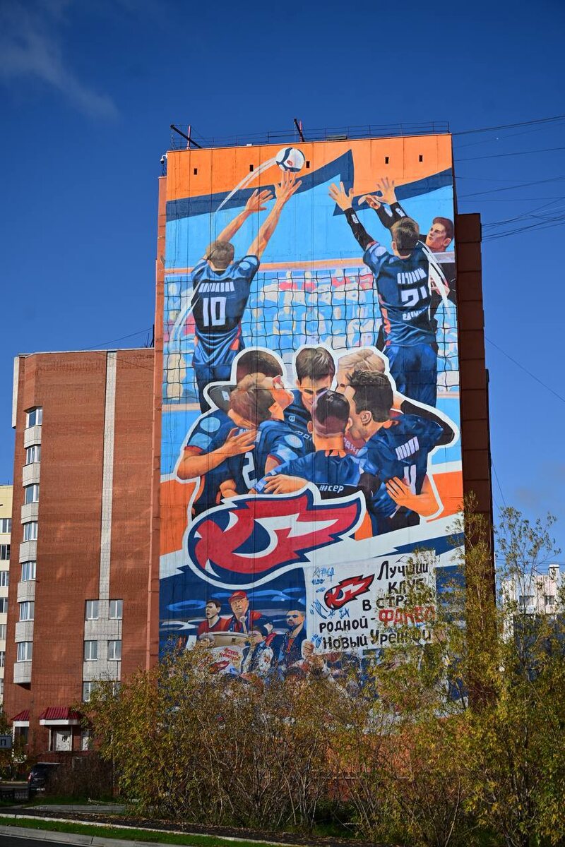 🏐 Лучший клуб в стране родной — «Факел» Новый Уренгой! В микрорайоне Восточный появился мурал, посвящённый нашему волейбольному клубу. На стене высотою 30 метров изображены моменты матчей и эмоции болельщиков. Автором кричалки, которую нанесли на стену, является главный фанат волейбольного клуба «Факел Ямал» Александр Яровой. А вы уже видели, какая красота получилась?! ❤️ НУР. Официально | Подписаться в MAX