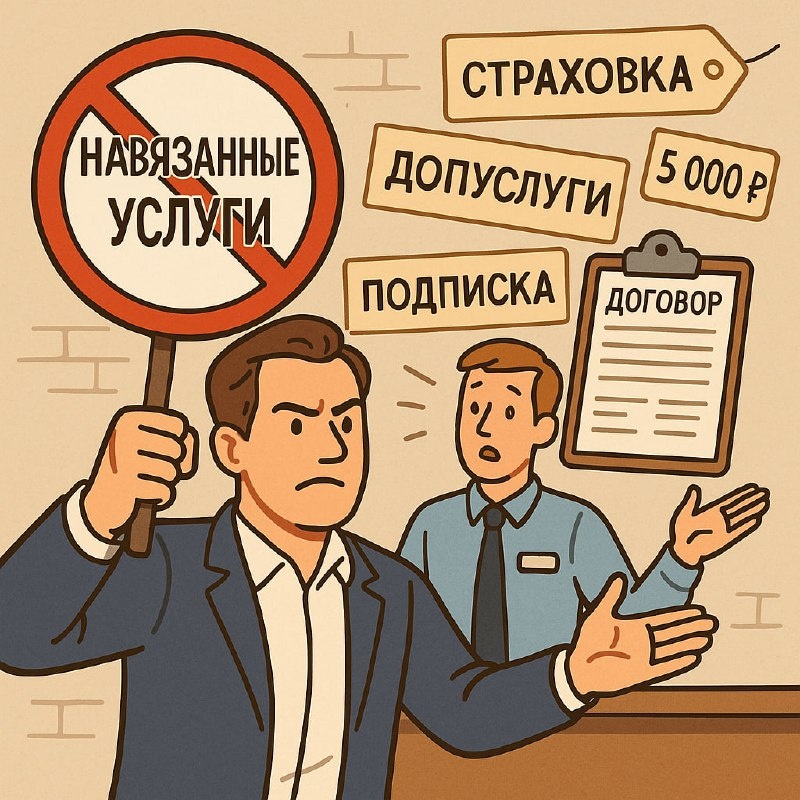 Запрещается навязывание потребителю дополнительных товаров (работ, услуг) за отдельную плату путем предложения потребителю до заключения договора о приобретении основных товаров (работ, услуг) приобрести дополнительные товары (работы, услуги) или заключить иные договоры, приобретение или заключение которых обусловливается обязательностью при приобретении основных товаров (работ, услуг), если иное не предусмотрено законом.