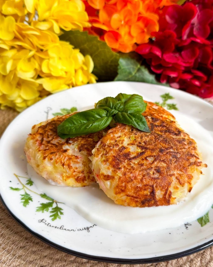Забирай рецепт и не забудь поделится с подругами!🌸 Вес готового блюда 420г (2 порции по 210г). КБЖУ на порцию: 329/23.7/10.7/34.2. КБЖУ на 100г: 156/11.3/5.1/16.3. Ингредиенты: 200г крабовых палочек (например, «Снежный краб») 220г кабачков (вес без семян и шкурки) 60г полутвердого сыра (любой сыр с калорийностью около 300ккал на 100г) 1 яйцо С1 50г пшеничной муки 2г растительного масла для смазывания сковороды соль, перец. Приготовление. Кабачок натереть на крупной терке, посолить, оставить на 5 минут. Кабачок даст сок, который нужно отжать. Крабовые палочки разрезать пополам и разобрать на волокна. Сыр натереть на мелкой терке. Смешать все ингредиенты, кроме масла. Можно добавить чеснок, зелень либо специи на ваш вкус дополнительно. Разогреть сковороду, смазать маслом. Слепить 6 котлет влажными руками. Выложить котлеты на сковороду и жарить 20 минут на огне ниже среднего, иногда переворачивать. Котлеты получаются очень нежные, слегка влажные за счет расплавленного сыра и кабачка.
