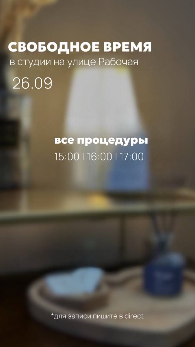 СВОБОДНОЕ ВРЕМЯ НА РАБОЧЕЙ 26.09 • ONLINE запись • WHATSAPP Ждём вас к нам на процедуры 🤍