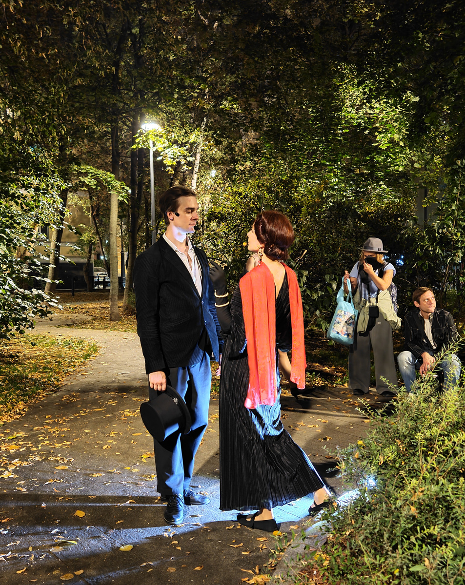 радостью! «Спектакль пешком» так мастерски переносит нас в 1917-1925 годы, что совершенно выключаешься из дня сегодняшнего и не обращаешь внимания на высотки и автомобили. Между Остоженкой и Пречистенкой оживает для нас старая Москва с ее тогдашними страстями. Мансуровский переулок, Большой