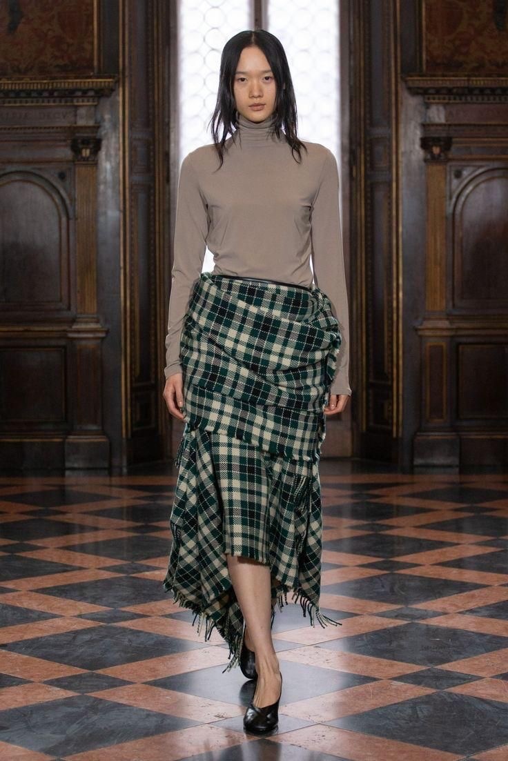 Ключевой тренд — сочетание клетчатых вещей с монохромными базовыми вещами.
