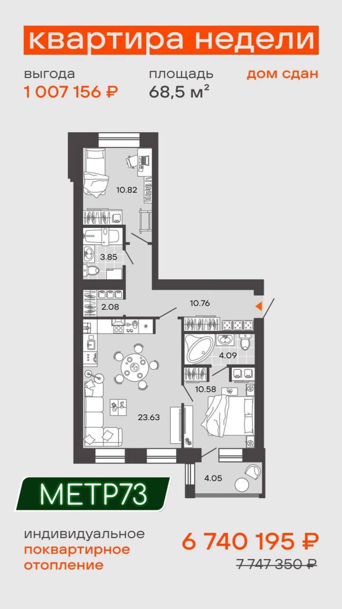 ➡️Квартира недели!💥 ⚡️Успевай забронировать до 01.10.25г. -дом сдан, -2 санузла, - разнесенные спальни, - индивидуальное поквартирное отопление двухконтурный газовый котел - просторная кухня-гостиная 24 м2 с 2-мя окнами, - гардероб ЖК «Дивный сад» Дом сдан Номер квартиры и дом, этаж: № 93 /дом 1 / 4 этаж Площадь: 68,5 кв.м. Тип отделки: Базовая отделка Стоимость: 7 747 350,00 руб. ⚡️При быстром выходе на сделку предоставляется скидка до 13 %⚡️ А это значит, что экономия составит 1 007 156 руб.