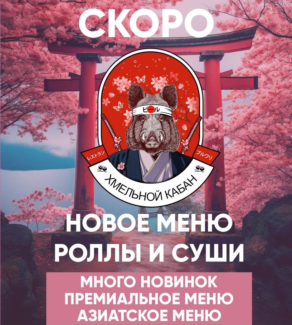 Совсем скоро! В ресторане «Хмельной кабан» — роллы и суши, азиатская кухня, премиальный сегмент
