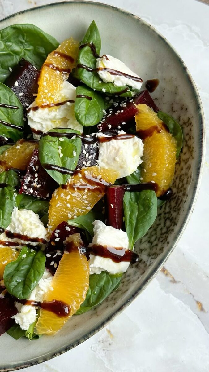 1) Тёплый салат из киноа с печёной свёклой, апельсином и творожным сыром (витаминный заряд)🌿