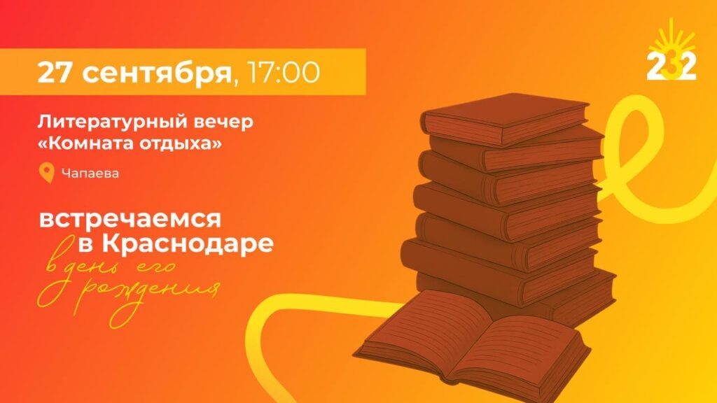 Организатором выступает газета «Краснодарские известия». В 17:00 начнется конкурс чтецов литературного клуба «Комната отдыха». Зрители смогут послушать поэзию в исполнении участников и насладиться живой музыкой от композитора и исполнителя Виталия Сумарокова. В пресс-службе администрации Краснодара сообщили, на площадке будет работать фотозона, где все желающие смогут сделать снимки на память. С 18:00 до 20:00 на ул. Чапаева продолжится праздничная программа с тематическими площадками и активностями. Афиша мероприятий доступна в телеграм-боте.