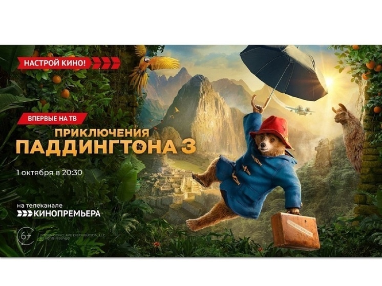Телеканал новинок мирового и отечественного кинематографа «Кинопремьера» (входит в премиальный пакет каналов «Настрой кино!») впервые на российском ТВ покажет продолжение известной франшизы с участием Антонио Бандераса – «Приключения Паддингтона 3». Медвежонок Паддингтон, ставший полноправным членом семьи Браунов, решает навестить свою тётушку Люси на родине – в Перу. Но по неизвестным причинам она отправилась в загадочный квест по джунглям Амазонки. Вместе с друзьями медвежонок едет в сердце тропических лесов на ее поиски, где его снова ждут захватывающие приключения! Смотрите 1 октября в 20:30 на канале «Кинопремьера».