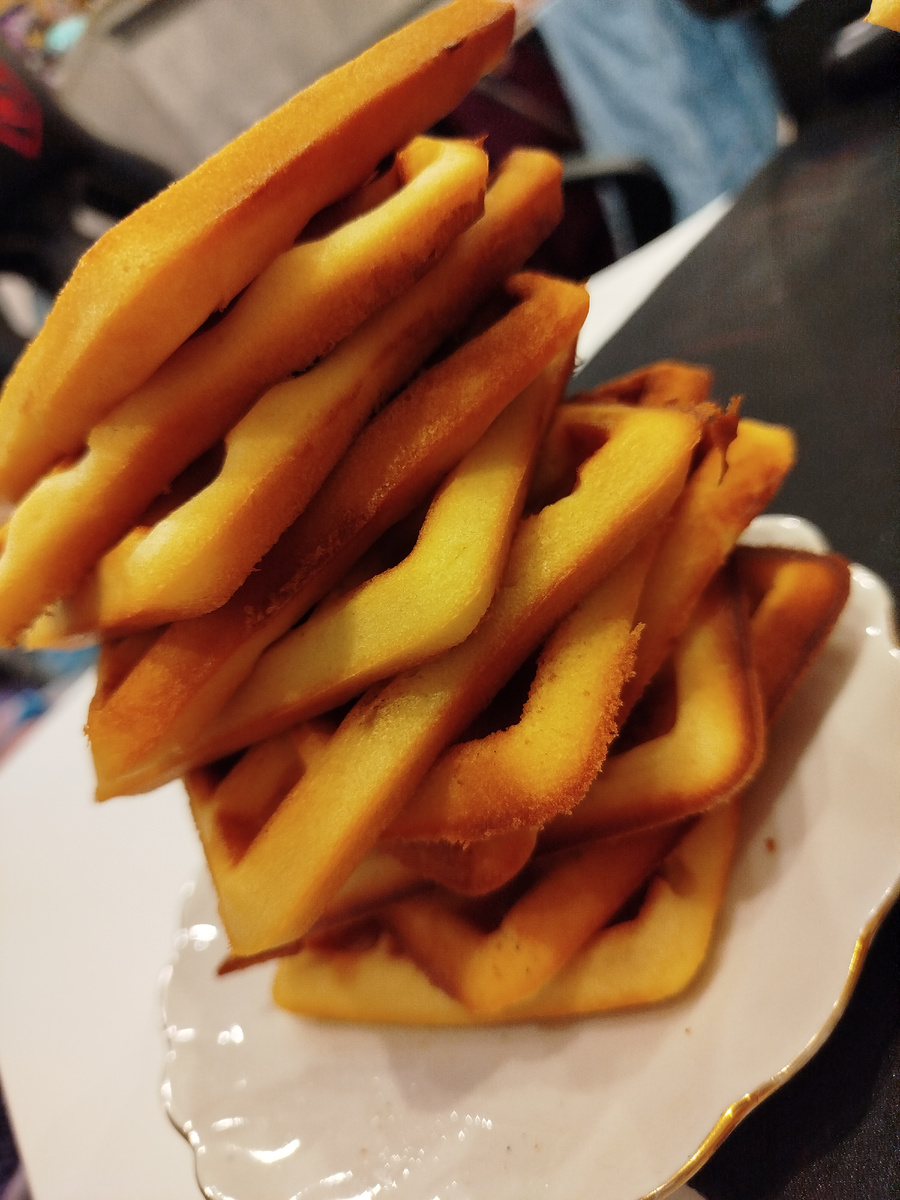 Рецепт очень простой) Вафли тесто: 5 яиц взбить. Добавить 280 гр сахара Ванилин Все взбить снова. Растопленное сливочное масло 250 гр . Постепенно добавлять 300 гр муки и взбивать хорошо. Должно получиться густое тесто. Выпекать 12 минут.