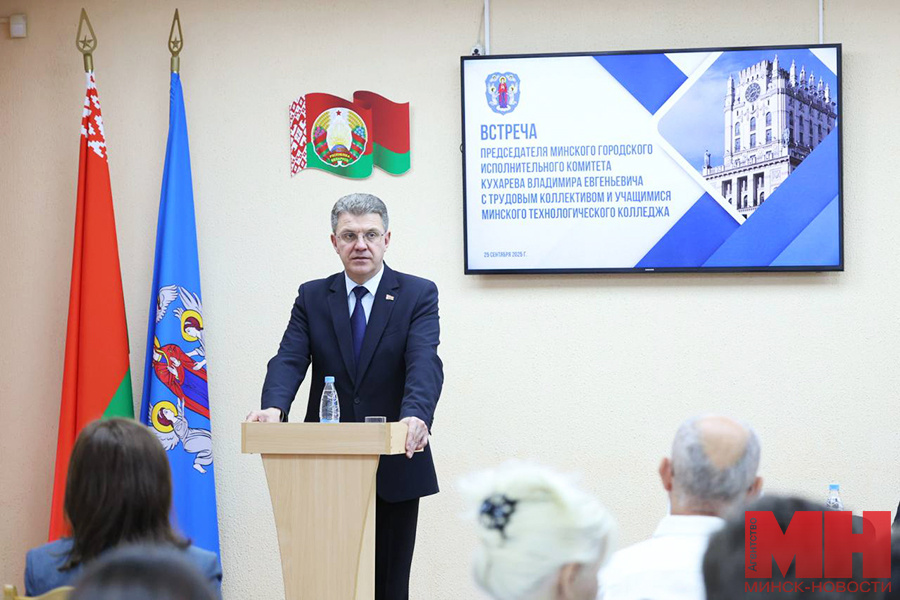 Председатель Мингорисполкома Владимир Кухарев встретился с учащимися и педагогами Минского технологического колледжа 25 сентября, передает корреспондент агентства «Минск-Новости»