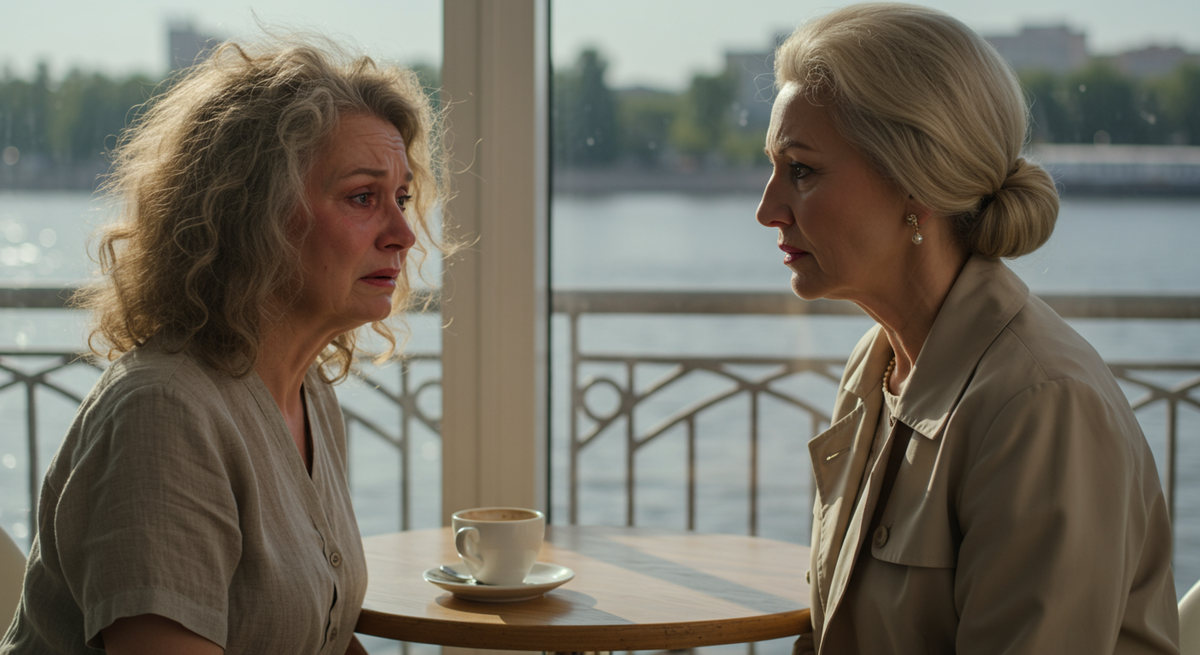 Кафе на волжской набережной было залито светом. Волга играла на солнце тысячами бликов, по реке лениво ползла баржа. Ирина уже сидела за столиком у окна, идеально прямая спина, дорогой бежевый тренч, безупречная укладка. Она выглядела моложе своих шестидесяти пяти, вся – воплощение успеха и контроля. Наталья в своем простом льняном платье и с растрепанными от быстрой ходьбы кудрями чувствовала себя рядом с ней бледной тенью.