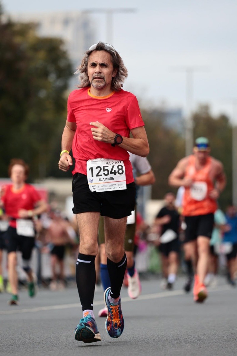 Ну вот как-то так мне и бежалось. ))) Все муки и страдания на лице написаны. Ни о чём не жалею! На 38 километре случилась Валентина Бурцева (Валя, которая амбассадор любой спортивной движухи в любом месте и одновременно - жена замечательного нашего Артура Бурцева, днём раньше приведшего к рекорду Светлану Аплачкину). Должен сказать, что Валя - очень правильная и важная часть Московского марафона! Особенно для меня. Когда я бежал свой первый марафон пять лет назад, она так громко и ярко за меня болела на 41 километре, что её чуть не арестовали...))) Спасибо, Валя!