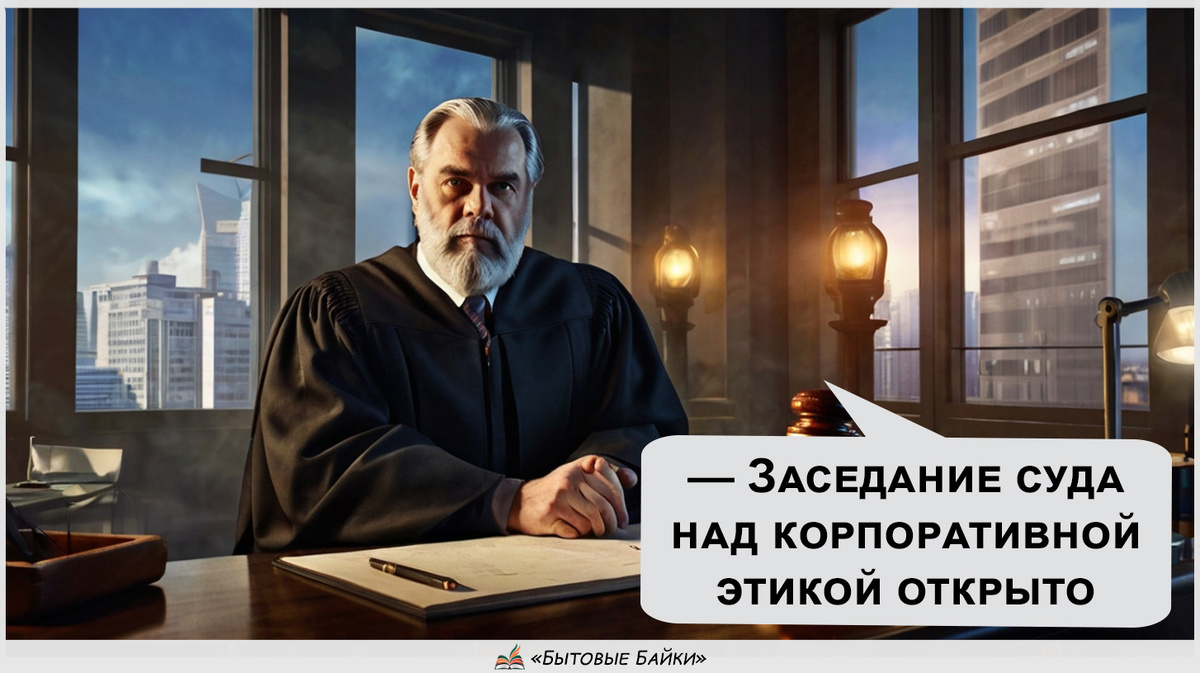 — Заседание суда над корпоративной этикой объявляю открытым! — громко провозгласил он. — Я — судья Минос, и сегодня мы разберём дело компании "Успешные решения".