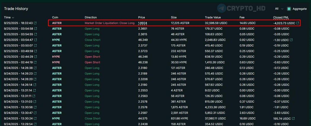 🙁 Бедолага Джеймс Уинн снова схлопотал ликвидацию…на этот раз снесло его лонг по токену #ASTER с 3х плечом. Ранее: наскреб денег Сryptо Headlines
