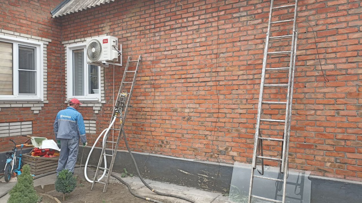 Миллерово. Утепление части дома из шлакоблока, обложенного кирпичом. Прокачка проблемных стен дома с зазором 8-10 см.👌
