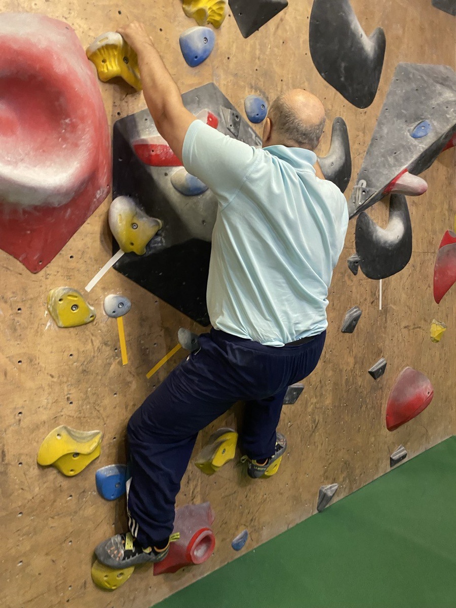 Скалолазанье. Осваиваю, новый навык. У меня есть традиция: каждый год осваиваю новый навык. В этом году — вводный курс по «Скалолазанью». Зачем я это делаю? Мне нравится драйв освоения новых телесных навыков, создание новых нейронных сетей, прорастание навыков сквозь кору старого опыта, новая палитра движений. Нашел скалодром рядом с моим домом. Я был удивлен количеству людей, которые лазали по стенам в воскресное, лихо взбирались наверх под потолок и звучно прыгали на маты, спускаясь вниз. Тренер Полина, хрупкая блондинка, рассказала и показала основы техники скалолазанья, а также, что трассы здесь говорят цветом. Самая легкая шепчет белым, самая сложная молчит черным. Полина, помогая нам взбираться по стене, использовала лазерную указку. Точечный луч, как светлячок, показывал путь: за что ухватиться, куда ступить. Гениальный и простой прием обучения. Уроки скалолазания, высеченные в камне: 1. Двигаться нужно медленно и обдуманно. Не рваться рывком, а читать стену, как кар