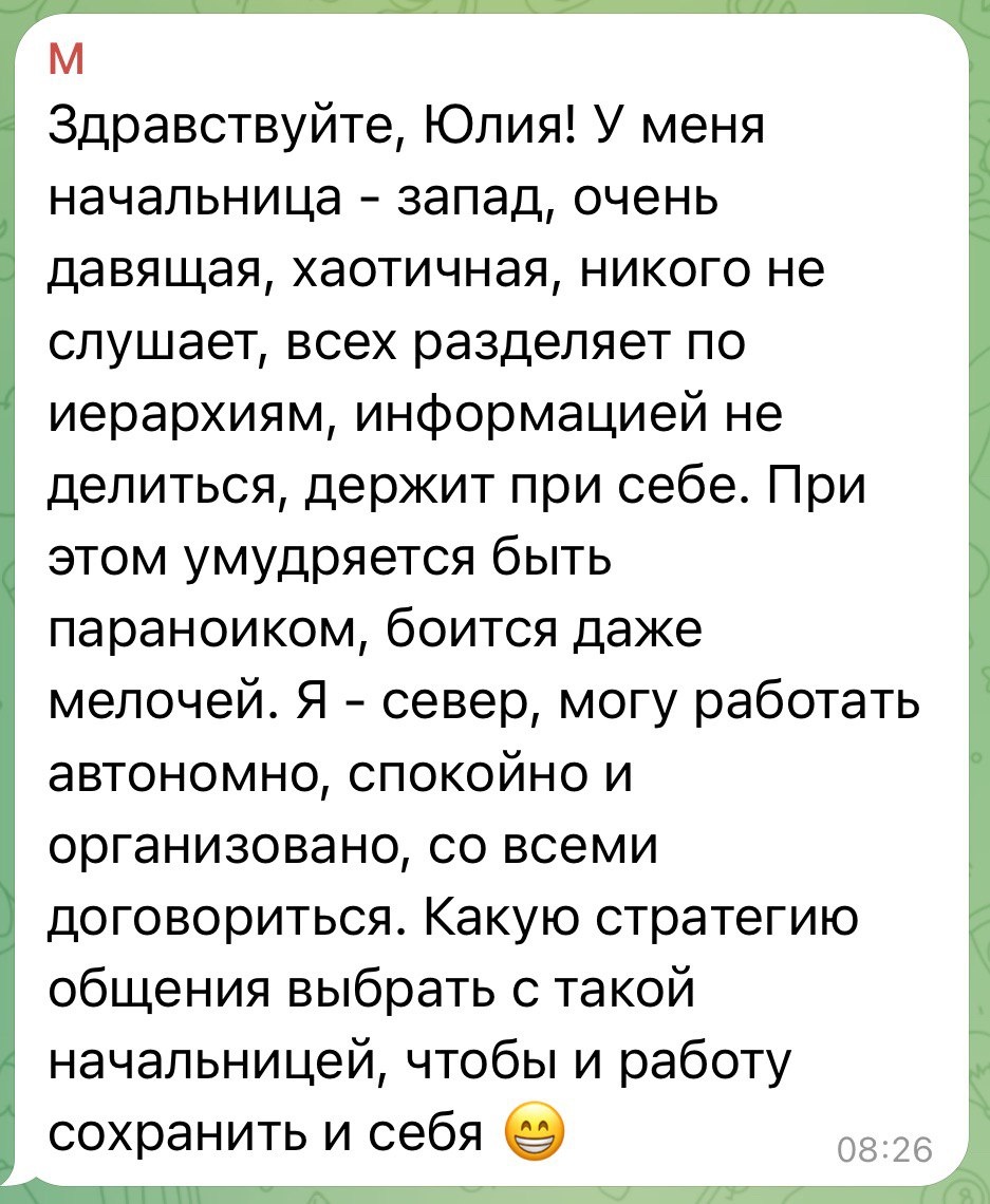 Вы совершенно точно описали стратегии Запада, когда он/а выпукло и харизматично проявляет свои черты: иерархичность, подозрительность (акцентуация параноидная: враг не спит 🧐), волевое давление (акцентуация психопатичная: кто не спрятался, я не виноват 👹).