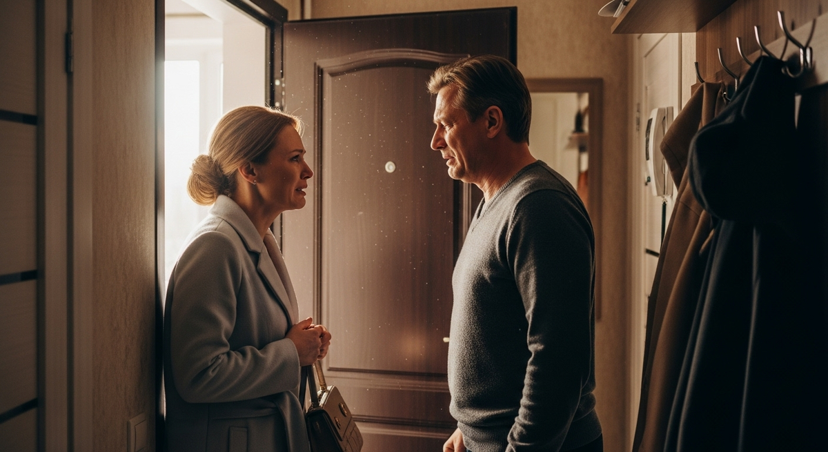 Андрей стоял в коридоре, загораживая выход, и смотрел на жену с плохо скрываемым раздражением. Марина, уже одетая в лёгкое пальто, с вызовом вскинула подбородок.