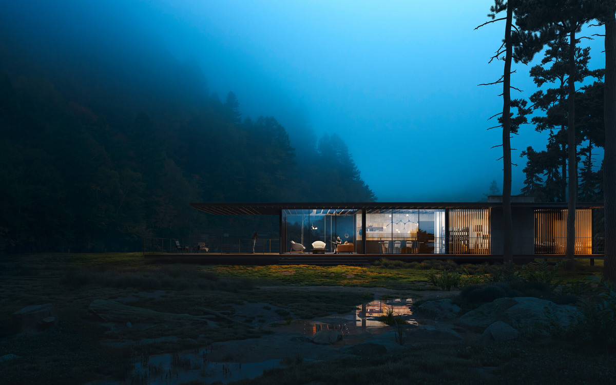Дом — это не только стены и крыша. Это живая среда, которая реагирует на время суток, сезоны и даже на погоду за окном. Особенно это чувствуется в современных домах с панорамным остеклением, где природа становится частью интерьера. Когда солнечные лучи заливают комнаты, дом наполняется светом и теплом. Панорамные окна работают как «рамки картин», где вместо полотен — живой пейзаж. ✨ В солнечный день дом кажется больше, пространство «дышит», а настроение поднимается само собой. Капли дождя на стекле превращаются в естественную медитацию. Дом становится камерным и спокойным. Когда вокруг снег и мороз, дом ощущается как надёжный кокон. Туман превращает участок в почти кинематографичное пространство. Дом будто парит в облаке. В такие моменты особенно ощущается ценность больших окон и минималистичной архитектуры: всё вокруг становится мягким и медитативным. Погода напрямую влияет на настроение человека. В правильно спроектированном доме: Архитектура, которая учитывает естественный свет и ви