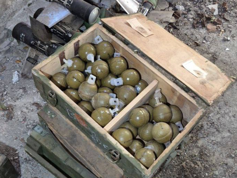 В ходе осмотра было изъято более семи тысяч патронов, десятки ручных гранат, порох для выстрела калибра 152 мм, артиллерийский порох и реактивный снаряд. Все изъятое было передано представителям Министерства обороны РФ. Фото: МВД по ЛНР