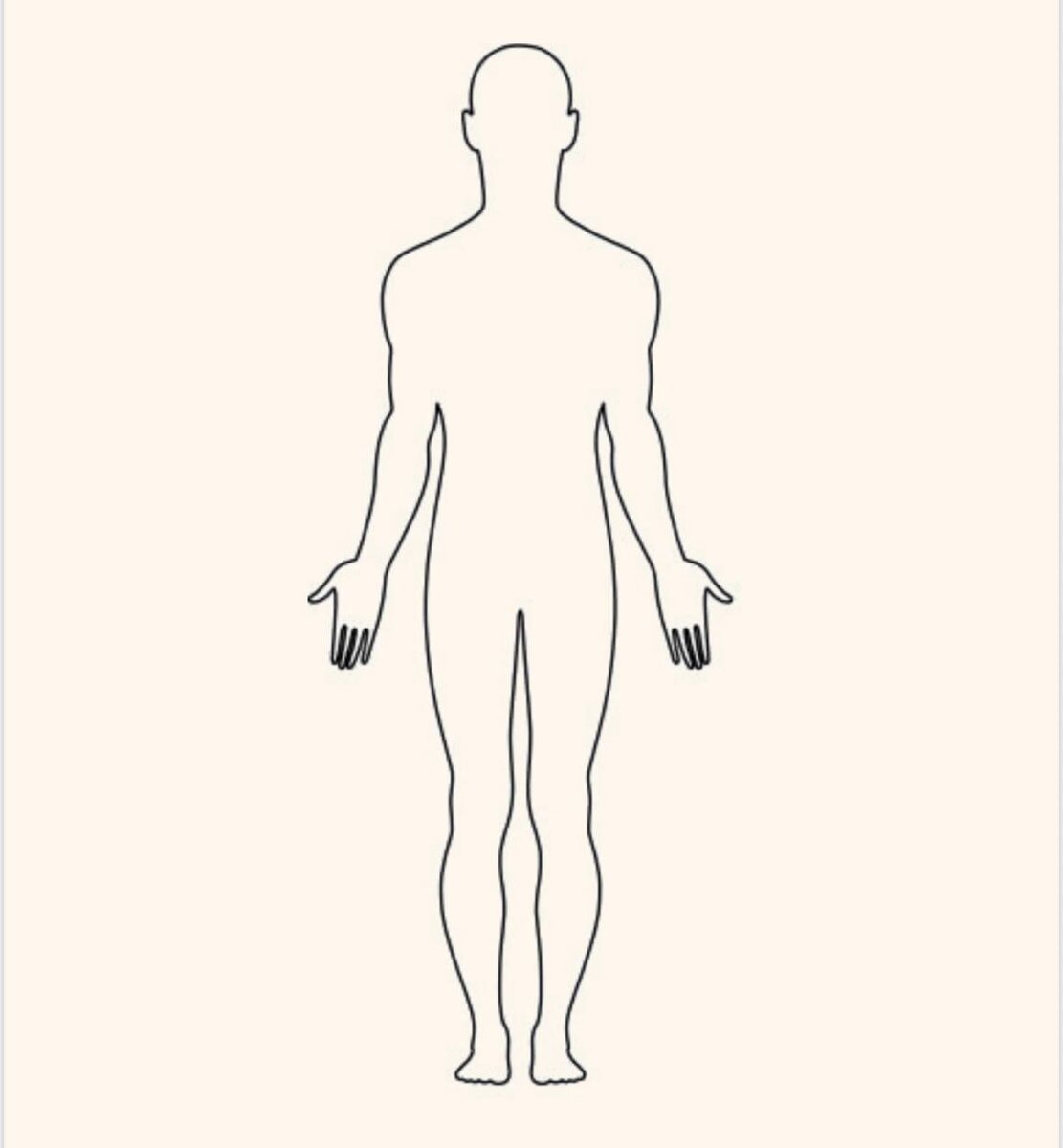 Сейчас я предлагаю сделать одну простую диагностическую технику, которая позволит определить, в каких зонах вашего тела есть напряжение. Для практики вам понадобится свободная не утягивающая тело одежда👘, цветные карандаши✏️. 1. Займите удобное и устойчивое положение тела стоя на ногах, слегка расслабив ваши колени, либо устройтесь сидя поудобнее. 2. Расслабьте все ваше тело. Закройте глаза и начните глубоко дышать. Подышите так какое-то время (1-2 мин.). 3. Затем представьте, словно вы сканируете свое тело внутренним зрением, двигаясь от макушки вашей головы до самых кончиков пальцев ваших ступней, продолжая при этом дышать и фокусируясь на всех ощущениях, которые есть в теле. Отметьте и запомните каждое из них. Затем дойдя до самого низа, сделайте глубокий вдох и откройте ваши глаза. 4. Составьте карту напряжений вашего тела. Для удобства, можете использовать картинку ниже. На силуэте тела, отметьте зоны, где есть напряжение, и те зоны, где как вы чувствуете, совсем отсутствует ч