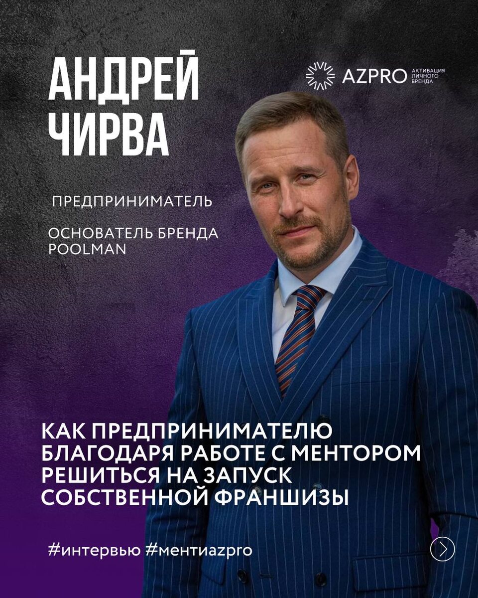Как предпринимателю, благодаря работе с ментором решиться на запуск собственной франшизы? Листайте-карусель 👉 рассказали историю Андрея Чирвы, предпринимателя с твердым бизнесом. Его кейс интересен тем, что в менторинг он пришел не по своей инициативе. Это был партнерский проект, поэтому ментору Андрея, Зинаиде Бурмис, на первичном аудите надо было «доказать» Андрею, что совместная работа пойдет ему на пользу. Андрей честно признается, что сначала он довольно скептически отнёсся к этой идее. Он не понимал, для чего ему нужно заниматься своим личным брендом, ведь дела у его компании идут хорошо: социальные сети активно ведутся, новые подписчики и клиенты регулярно приходят. Во время общения с ментором Андрей неожиданно для себя обнаружил те сферы, где ему оказалось интересно проявляться без привязки к бизнесу. Именно этот первый шаг — честно посмотреть на себя со стороны и увидеть новые возможности — стал для него ключевым. Такой же шаг вы можете сделать на аудите: там вы получите