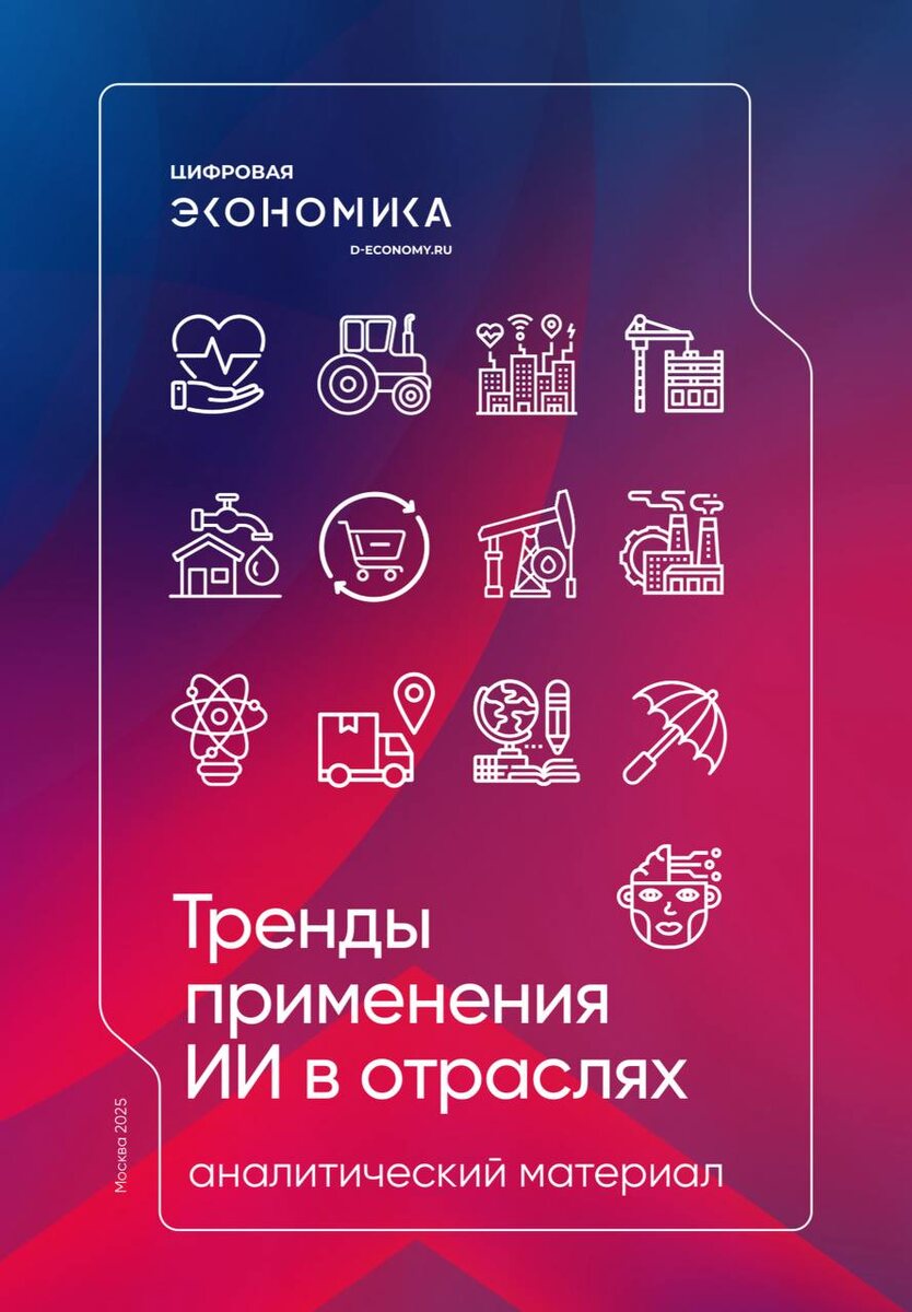 ИИ-тренды ❗️АНО ЦЭ выпустила аналитический отчет «Тренды применения искусственного интеллекта в отраслях». 🔸Трендбук охватывает 1️⃣0️⃣ приоритетных отраслей: 🔹здравоохранение, 🔹наука, 🔹образование, 🔹сельское хозяйство, 🔹сфера строительства, 🔹ЖКХ и Умный город, 🔹промышленность и другие. ➡️Выявлено более 90 трендов развития ИИ — краткосрочные, среднесрочные и долгосрочные. ➡️Отдельное внимание уделено футуристичным сценариям развития ИИ до 2035 года, таким как распространение общего ИИ (AGI), глобальная роботизация и автоматизация профессий, развитие самоуправляемых мультиагентных систем, квантовый ИИ и кибернетизация человека. 💬Евгений Осадчук, директор направления «Искусственный интеллект» АНО «Цифровая экономика», для НОП: Внедрение технологий искусственного интеллекта ведет к глубинным преобразованиям во всех сферах жизни на фоне всеобщей цифровизации. Так, ИИ в отраслях стимулирует компании к переосмыслению деятельности, оптимизации и созданию новых процессов. Итог