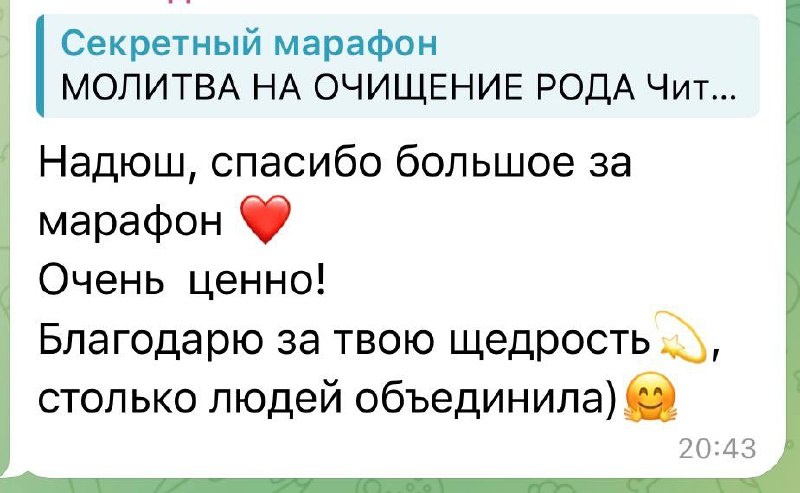 Вот так вот душевно прошёл наш секретный марафон🥰🥰🥰 Даже все отзывы не поместились❤️❤️❤️ За три дня мы с участницами марафона провели очищение себя, своего пространства и сделали практики на привлечение желаемого в свою жизнь. УЖЕ некоторое участницы заметили результат: 🎁 получили подарки 💴 и деньги, в том числе 🫰 отдали давнишний долг 💸 поступили интересные и выгодные предложения А это только начало! Ведь прошло всего 3 дня!😍 Спасибо ВСЕМ, кто принял участие!🙏🙏🙏❤️❤️❤️