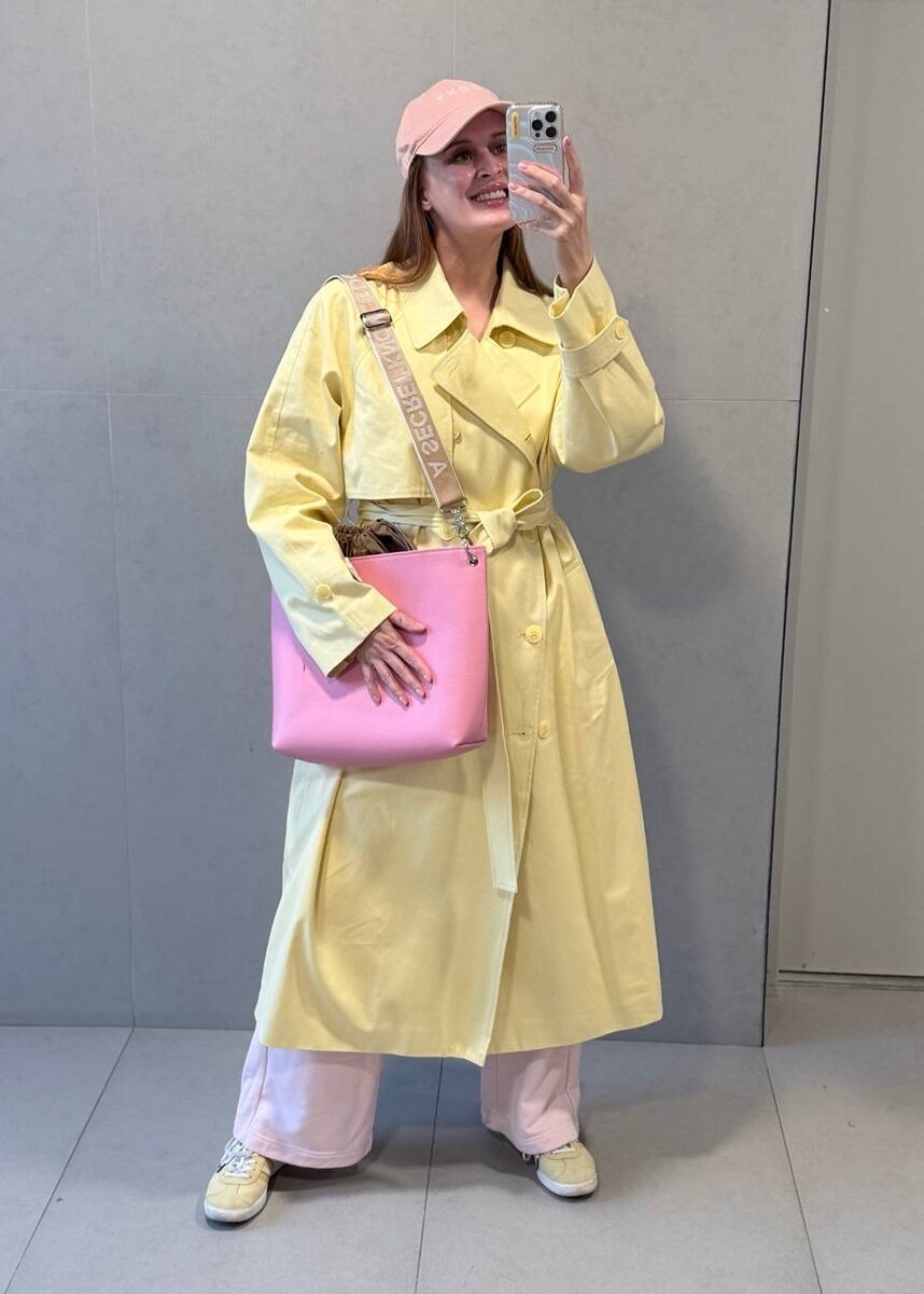 ASK выпускает сумки-конструкторы, в которых можно менять цвета внутренних мешочков и ремней. То есть с одной основой можно бесконечно экспериментировать и каждый раз создавать новую сумку. Десятки цветов и разные фактуры: прозрачные основы, из цветного пластика, из гладкой кожи, под питона, с ворсом. А ещё можно выбрать размер: от крошки-кроссбодика до полноценного шопера, в который поместится всё для учебы или небольшого путешествия. Выбрала баблгамовую малышку с бежевым мешочком. В неё даже ноут влез, хотя выглядит компактно. Нереально нежная кожа и подкладка. А как с плащом смотрится, да?