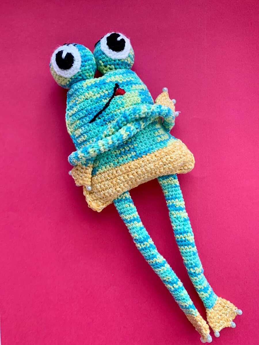 Лягушка-тянучка Пряжа, бусины 1500₽ #рукоделие #своимируками #амигуруми #игрушки #вязаниекрючком