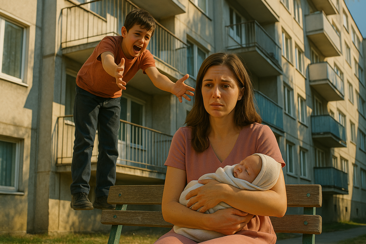 — Мама! — раздался крик с балкона. Мальчик рвался к ней, плакал. — Не бросай меня!