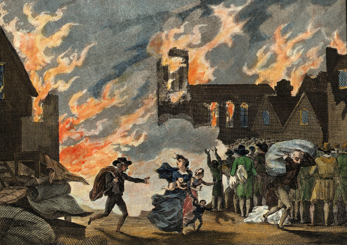 Пожар бушевал четыре с половиной дня. Это было зрелище апокалиптических масштабов. Огромный город, центр мировой торговли, превращался в пепел на глазах у своих беспомощных жителей. Люди в панике хватали самое ценное и пытались бежать. Темза была забита лодками и баржами, гружёнными домашним скарбом. На полях за городской стеной раскинулись огромные лагеря беженцев. Воздух был настолько горячим, что птицы падали замертво. Земля под ногами раскалилась так, что, по словам очевидцев, «подошвы на обуви сгорали».