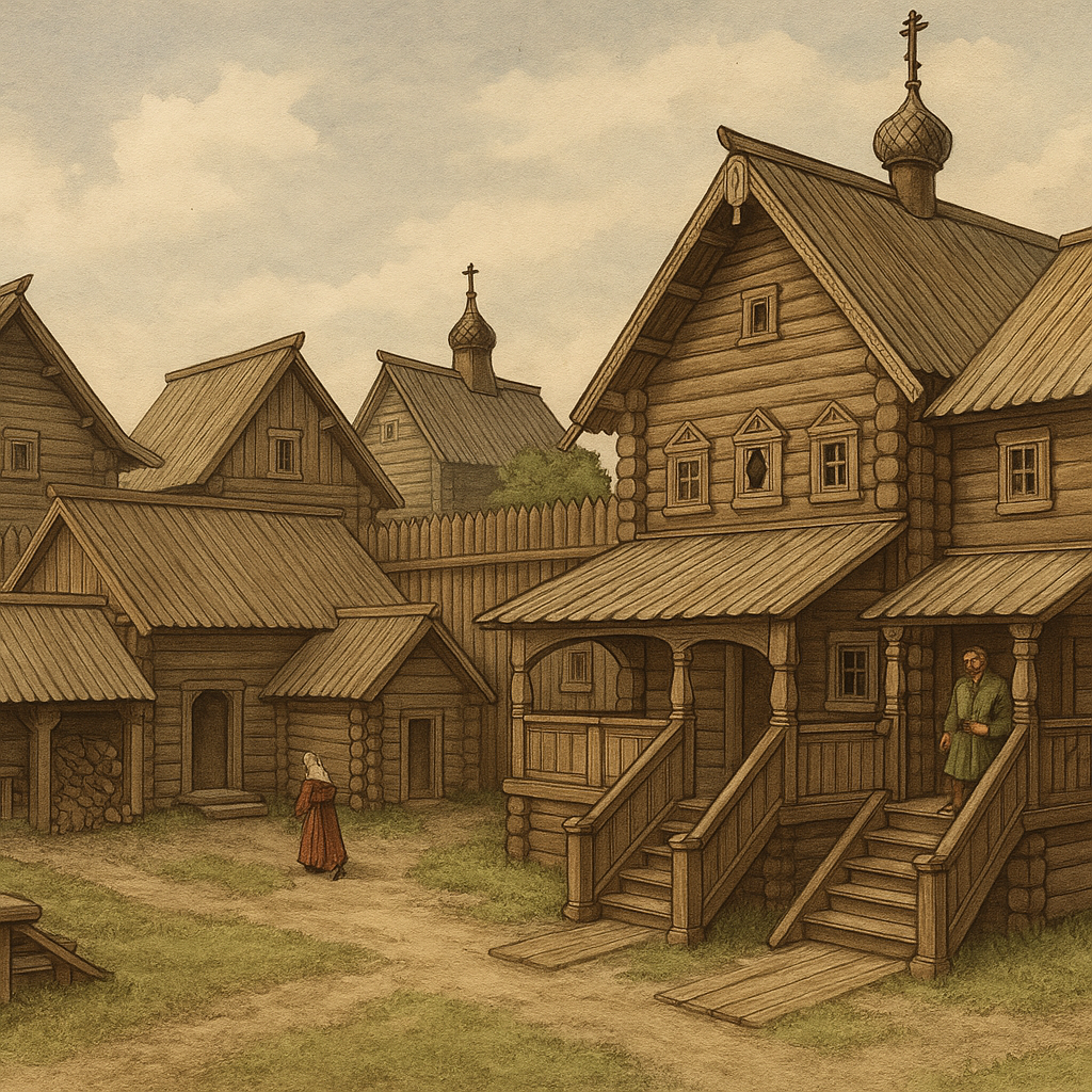 Вопреки распространенному мнению, усадьба зажиточного человека в Древней Руси редко представляла собой одно большое здание. Это был целый комплекс отдельных строений, называемых «хоромами», который по своей структуре напоминал небольшой город. На одном дворе могли располагаться жилые избы, нарядные горницы — светлые и чистые комнаты для приема гостей, повалуши для хранения имущества, а также сенники — холодные летние покои, часто использовавшиеся во время свадебных обрядов.