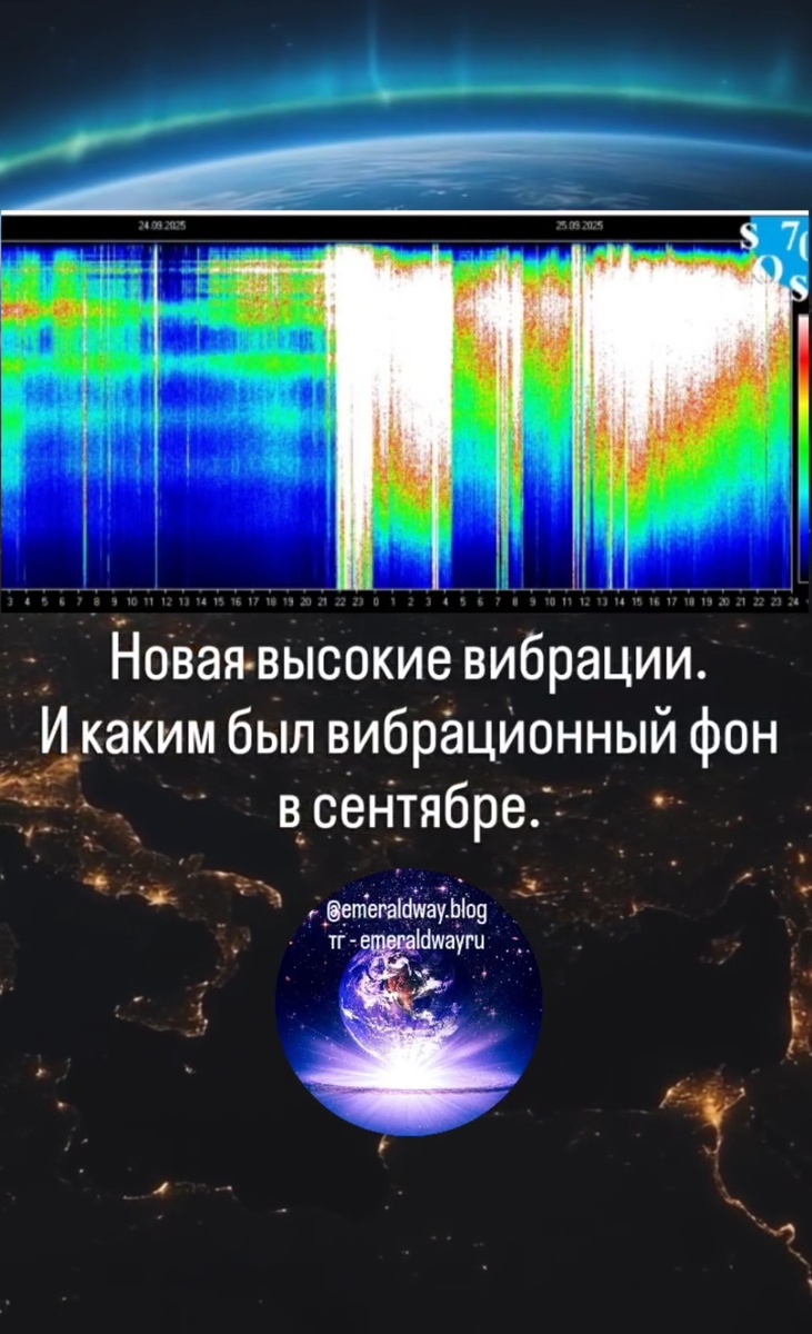 Приветствую, друзья💫 О текущих вибрациях нашей Земли и о том, какие они были в течение всего сентября. Развитие процессов вибрационного планетарного фона в сентябре прошёл в общем ключе глубокой перестройки всей энергетической системы Земли, что связано и с текущими задачами квантовых трансформаций и переходного периода. В отличие от предыдущих месяцев, когда наблюдались мощные и широкомасштабные скачки вибраций, в сентябре световых всплесков было значительно меньше. В начале месяца 1 и 4 сентября высокочастотные мощные скачки 80 и 55Гц🔥. В середине месяца во время коридора затмений 12 сентября световой всплеск до 71Гц🔥. И сейчас к концу месяца 24-25 сентября третья волна обновления длительным потоком высокочастотных вибраций до 61Гц🔥. В большинстве дней месяца наблюдался умеренный уровень бета-диапазона. Это позволило интегрировать пройденные программы, перенастроить их на обновляемую квантовую структуру нового уровня нашей планеты🌍. Сентябрьский вибрационный фон - это п