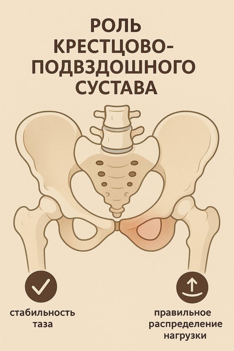 🦴 Крестцово-подвздошный сустав: маленький, но очень важный Многие даже не подозревают о его существовании, пока не сталкиваются с болью в пояснице или тазу. Крестцово-подвздошный сустав (КПС) соединяет крестец и подвздошные кости таза, обеспечивая: ✔️ стабильность таза, ✔️ правильное распределение нагрузки между позвоночником и нижними конечностями, ✔️ амортизацию при ходьбе и движении. ❗ Когда сустав работает неправильно (из-за воспаления, травмы, гипермобильности или блокады), это может привести к: — хронической боли в пояснице и тазу, — ограничению подвижности, — дискомфорту при сидении, ходьбе или наклонах, — иррадиирующей боли в ягодицу или ногу (похожей на ишиас). 🧩 Нарушения в работе КПС часто маскируются под другие заболевания позвоночника. Поэтому при длительной боли в пояснице важно обращаться к врачу и проходить диагностику. #здоровьеспины #поясница #тазобедренныйсустав #крестцовоподвздошныйсустав #артроз #ортопедия #неврология #лечениеболи #здоровье #суставы #реабилитаци