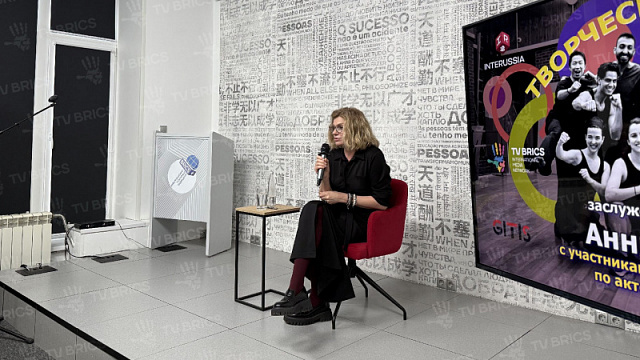 В информационно-культурном медиацентре БРИКС+ в Москве состоялась творческая встреча молодых актеров из стран объединения с заслуженной артисткой России Анной Ардовой. Она поделилась с коллегами из Аргентины, Бразилии, Индии, Китая, Кубы, Мавритании, Туниса, ЮАР и других государств своим профессиональным опытом – от учебы в ГИТИСе до работы художественным руководителем одной из его мастерских и артисткой Московского академического театра им. Вл. Маяковского. Она также познакомила гостей с новейшими тенденциями и практиками русской театральной школы. «Мы же особенные люди, так же как и художники, и математики. У каждого есть свое индивидуальное направление. <...> Важно, чтобы это слышали молодые люди, что есть сомнения и трудности, но ты их преодолеваешь. И каким образом ты это делаешь? Юмором, работой, трудом, упорством», – отметила артистка. О своих впечатлениях участники программы стажировок рассказали TV BRICS в эксклюзивных комментариях. Для многих стажеров этот диалог стал ценным