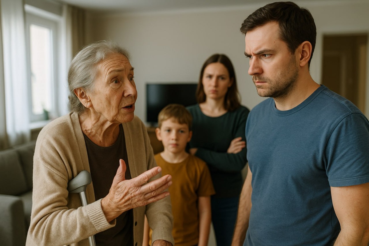 Марина остановилась в дверях зала, не снимая куртку. Клетчатая сумка в прихожей, костыли у стены, запах супа — всё складывалось в картину, которую она не ожидала увидеть после двенадцатичасовой смены в аптеке. На диване под клетчатым пледом сидела пожилая женщина с чашкой чая в руках. Лицо знакомое только по фотографиям на холодильнике.