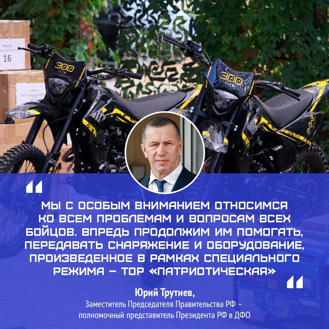 Продукция ТОР «Патриотическая» вновь доставлена частям в ДНР и Запорожской области. Для передачи вооружения, обмундирования и транспортных средств с командирами лично встретился вице-премьер России – полпред ДФО Юрий Трутнев