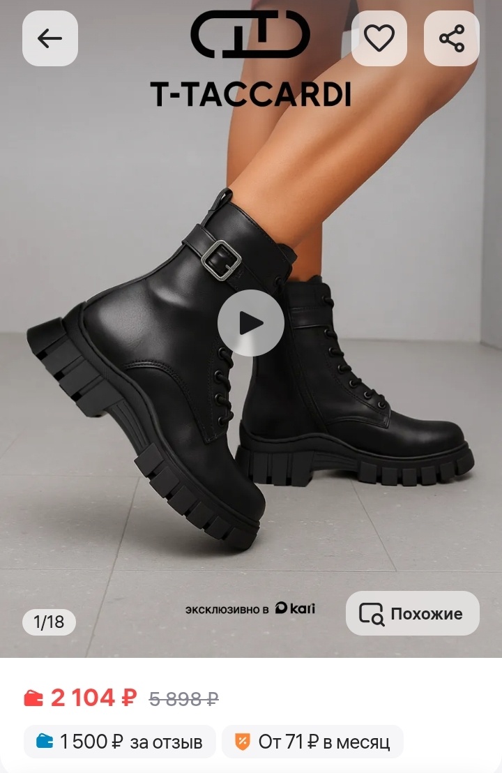 2. На Wildberries купила себе классные зимние ботинки. Их цена была 2 104 рубля, но отзыв, оставленный на товар, возвращают 1 500 рублей. Итого ботинки обошлись всего в 604 рубля. Я довольна.