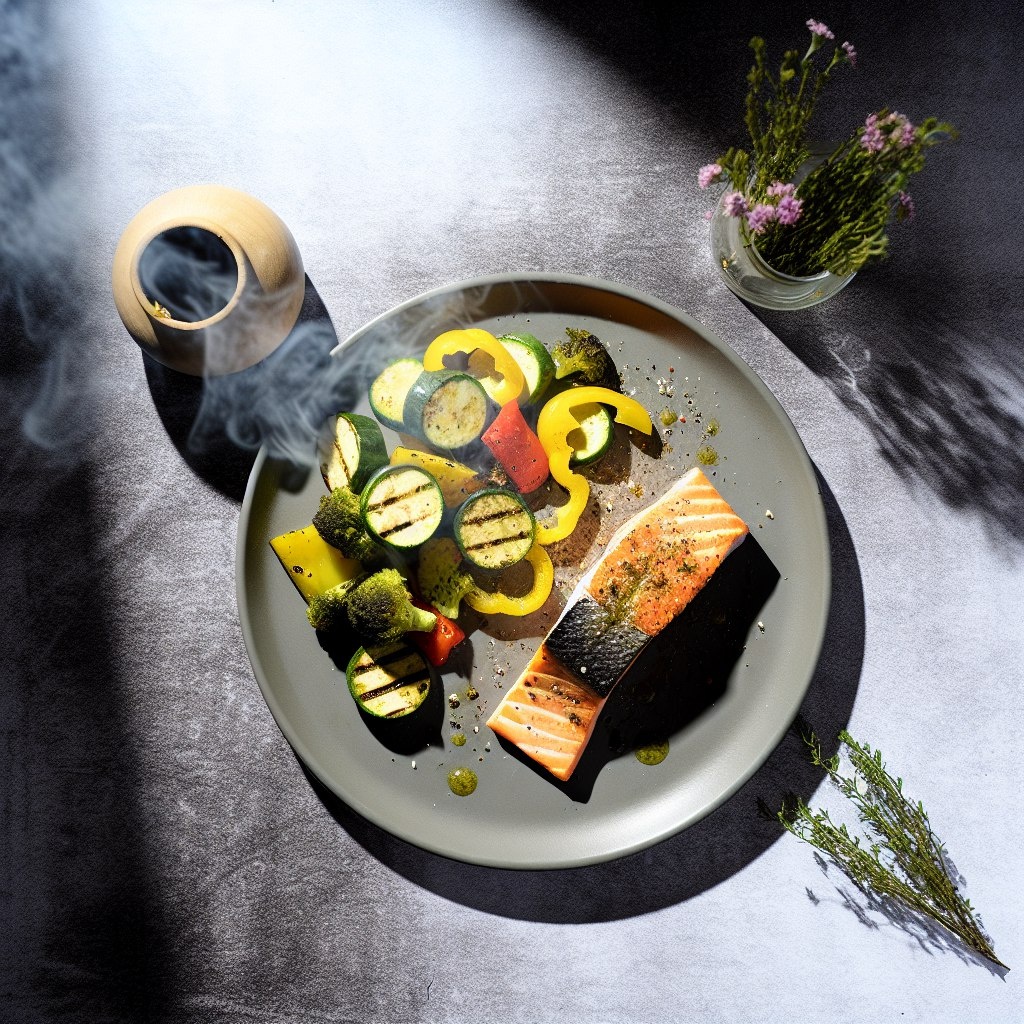 Лосось с овощами на гриле Ингредиенты на 2 порции: филе лосося 250 г, цукини 150 г, болгарский перец 100 г, брокколи 120 г, лимон, 1 ч.л. оливкового масла, зелень, соль, перец. Приготовление: 1. Лосось натереть солью, перцем и сбрызнуть лимонным соком. 2. Овощи нарезать крупно, смешать с маслом, добавить немного соли. 3. Разогреть гриль/сковороду. Обжарить лосось по 3-4 минуты с каждой стороны, овощи — до мягкости. 4. Подавать, украсив зеленью. Калорийность: 102 ккал/100 г. Общий вес: 620 г. Уверен, у тебя получится вкусно и полезно! Не сдавайся, цель близко. ✊🏽